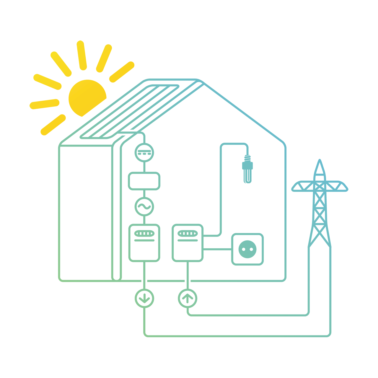 Decydując się wyposażyć nasz dom w taką instalację musimy być świadomi z czego składa się instalacja fotowoltaiczna. Poniżej przedstawiamy ideowy schemat instalacji fotowoltaicznej: